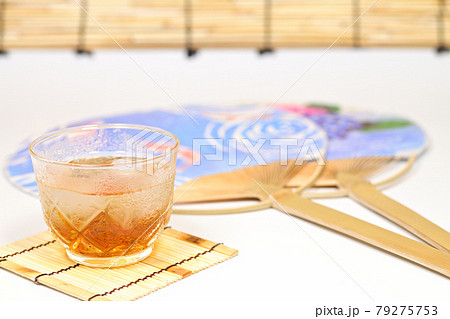 冷えた麦茶と竹製マット 写真素材 フォトライブラリー Photolibrary